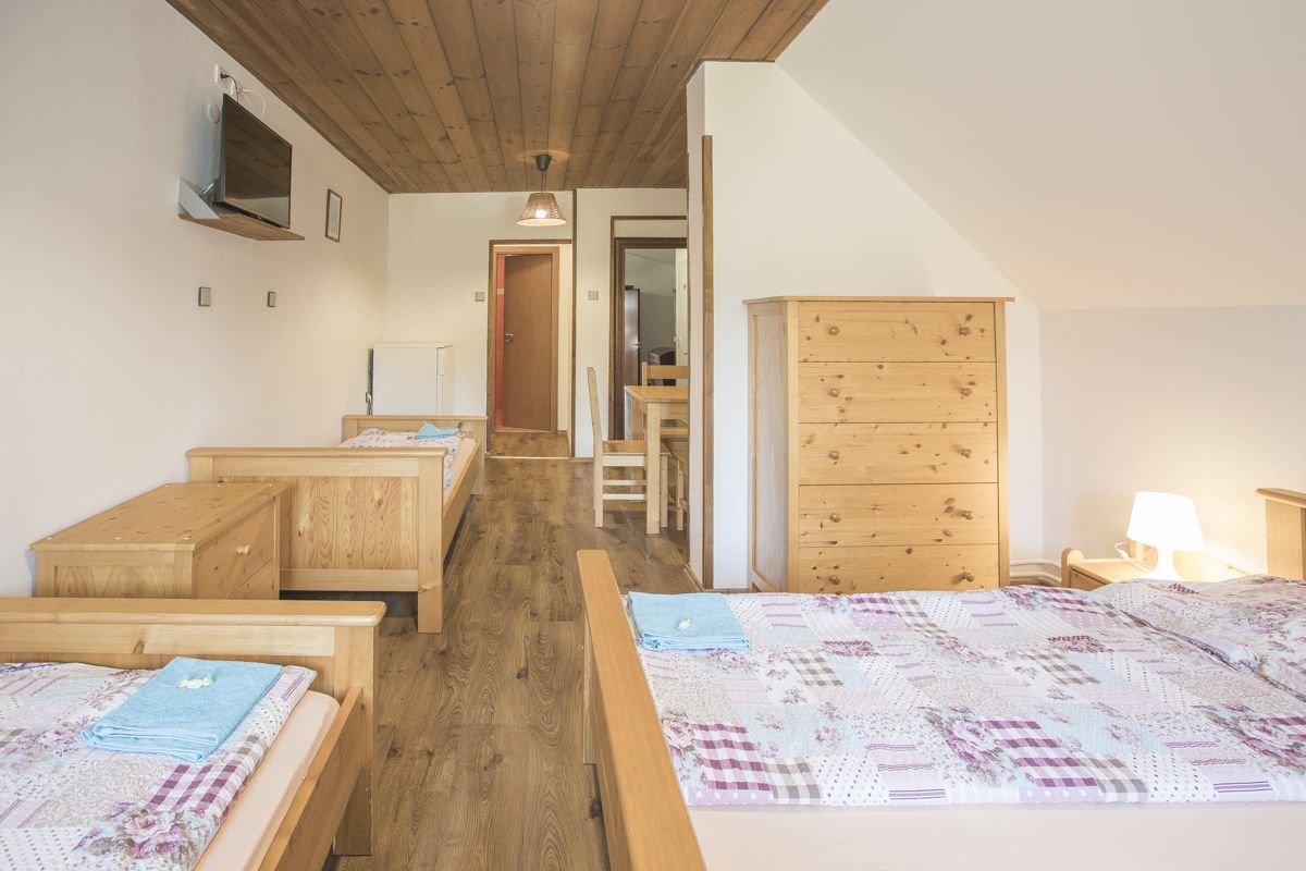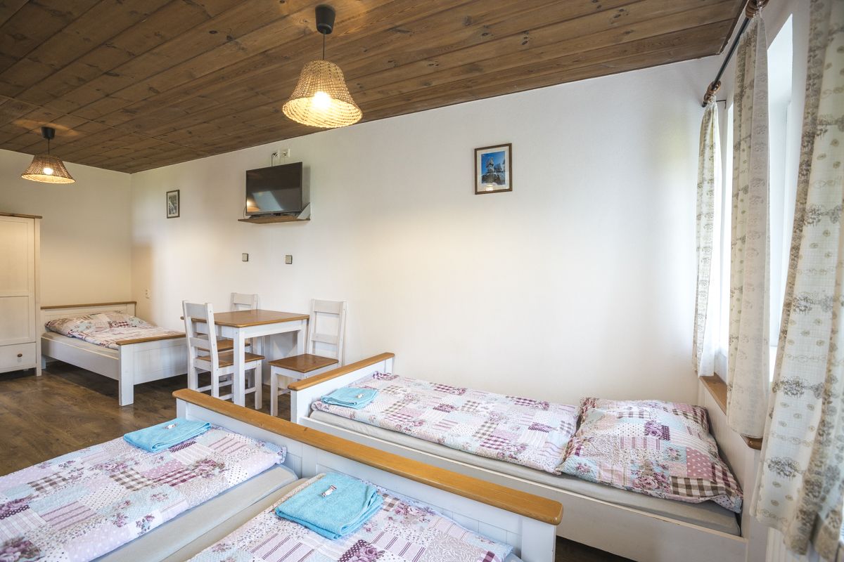 Jsme rodinný penzion fungující přes 30 let, který je každý rok modernizován, především z důvodu zvýšení standardu odpovídajícímu současným trendům ubytování, a to při zachování stylovosti původního roubeného stavení. Samozřejmostí je kompletní sociální zařízení na pokoji a také TV, SAT, WIFI internet, lednice. Apartmány jsou vybaveny kuchyňkou. Každý pokoj má své parkovací místo. K dispozici také zastřešená venkovní terasa, krb a ohniště, dětské hřiště, pískoviště, skluzavka. Workoutové hřiště a venkovní bazén se slanou vodou.